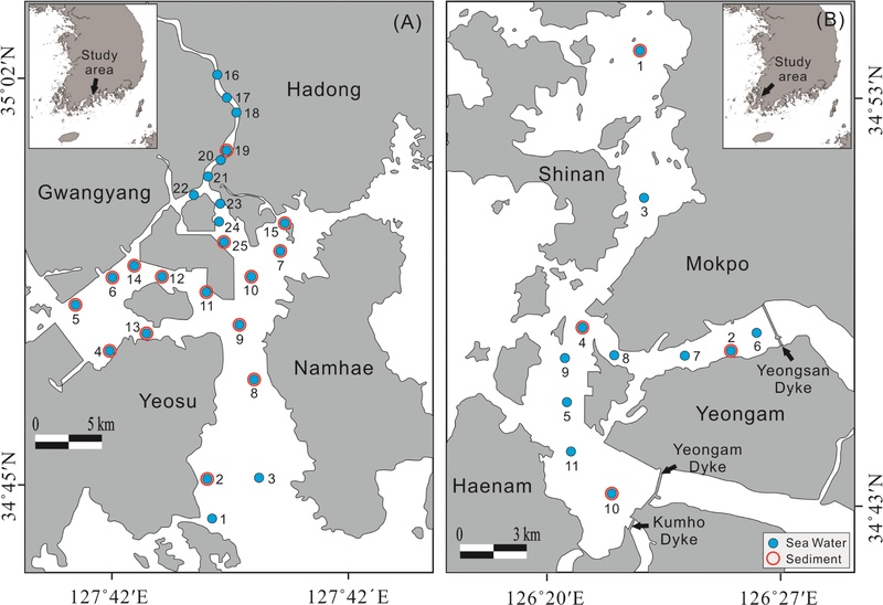 연안 해역의 퇴적환경은 조석, 파랑, 지형적 특성에 의해 복잡한 양상을 보이는 것이 일반적이다. 복잡한 양상의 퇴적환경은 특성지표인 강열감량(IL), 화학적산소요구량(COD), 산휘발성황화물(AVS), 총유기탄소(TOC) 등의 분포와 일치하지 않아 지리적 구분이 매우 어렵다. 퇴적환경의...